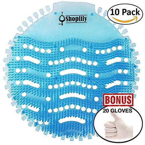 | 10 Pack Urinal Screens Deodorizers - 20 BONUS Cleaning Gloves | |